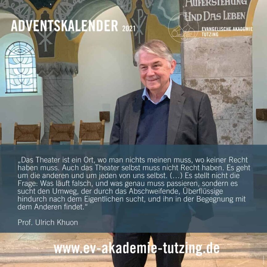 5. DEZEMBER5 / 24Prof. Ulrich Khuon, Intendant des Deutschen Theater in Berlin, sprach bei seiner Kanzelrede der Evangelischen Akademie Tutzing und ihres Freundeskreises in der Münchner Erlöserkirche über den hohen Wert des Theaters für eine Entschleunigung der Debattenkultur. -