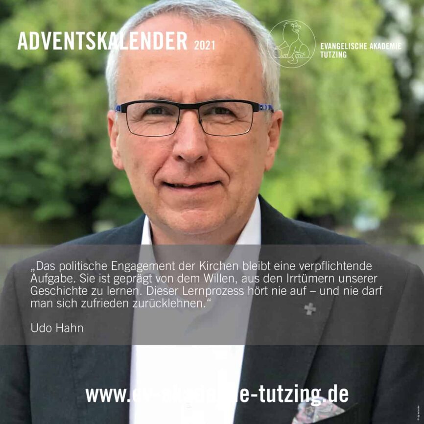 Udo Hahn ist Pfarrer, Publizist und Direktor der Evangelischen Akademie Tutzing. Er ist Autor und Herausgeber religiöser Sachbücher und spiritueller Texte. Dieser hier entstammt dem Kalender „Dem Stern folgen“ (Verlag Butzon & Bercker).
