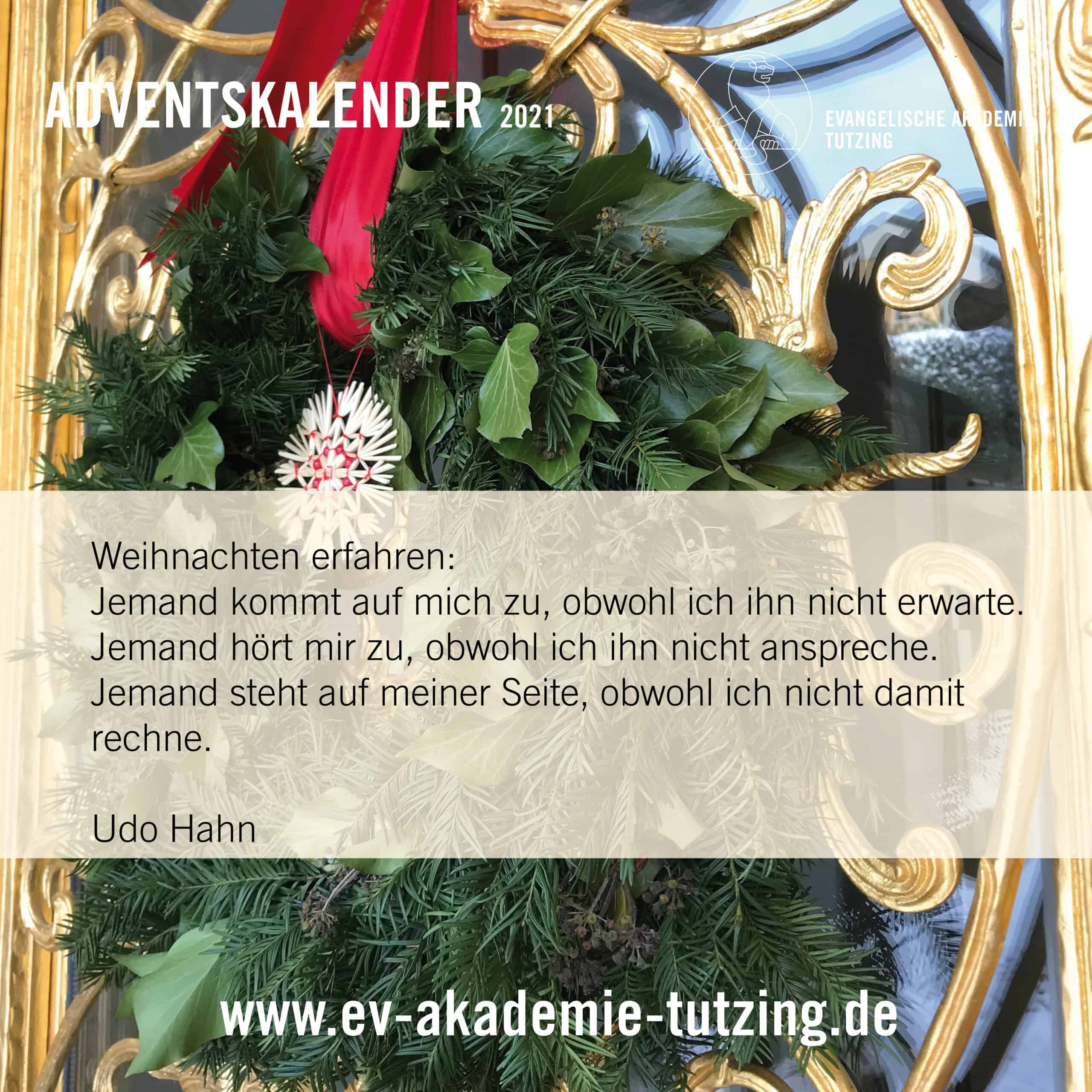 An dieser Stelle geht ein besonderer Dank an das Adventskalender-Wichtelteam im Hintergrund: Beat Ostermeier, Ingrid Barth, Barbara Polhuis, Anton Abraham, Angelika Mrozek-Abraham, Udo Hahn sowie an das Studienleitungs-Team der Evangelischen Akademie Tutzing.