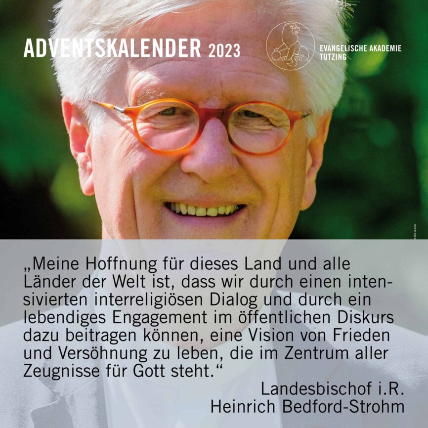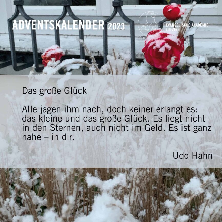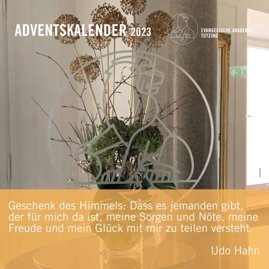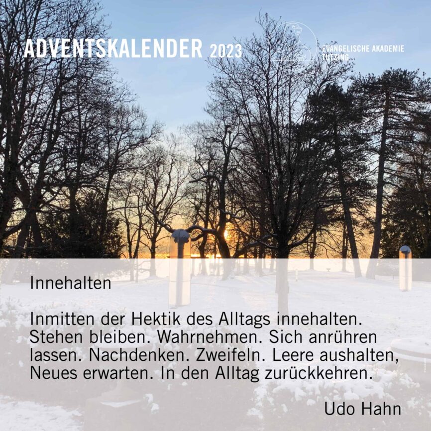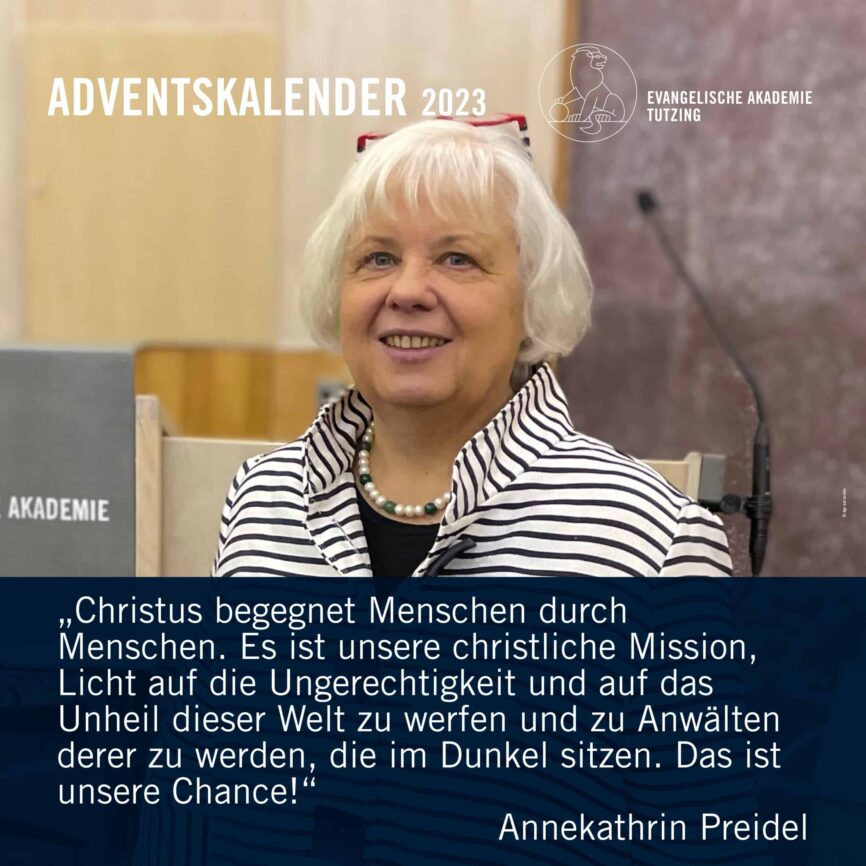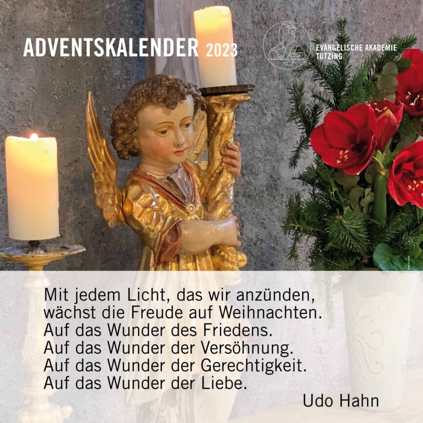 Dorothea GrassEndlich Advent! Bis zum Heiligabend öffnen wir wieder an jedem Tag ein „Türchen“ unseres Akademie-Adventskalenders mit Impulsen aus unserem Akademiejahr 2023. Gehen Sie jeden Tag neu auf Entdeckungstour: auf unserer Homepage sowie auf unseren Social-Media-Kanälen!