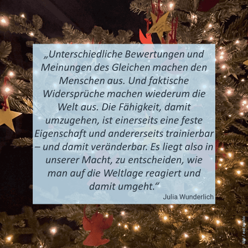 In unserem Adventskalender veröffentlichen wir vom 1. bis 24. Dezember jeden Tag ein Zitat aus unserem Akademiejahr 2025. Das tagesaktuelle „Türchen“ finden Sie auf unserem Instagram – und Facebook -Kanal sowie in dieser Bildergalerie.
