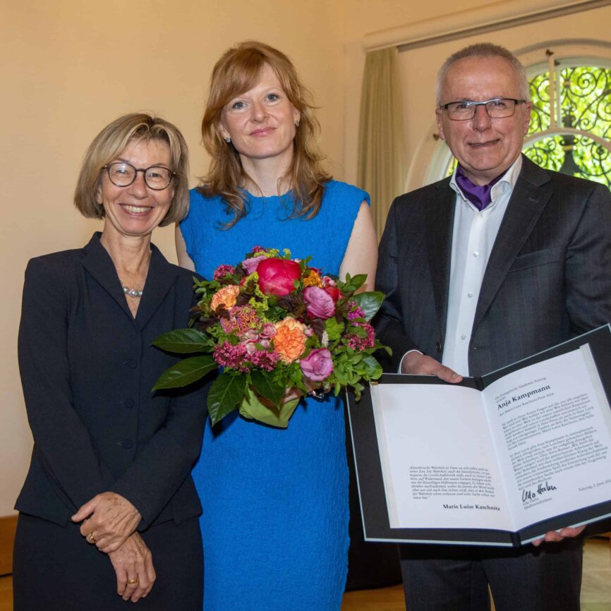 Die Verleihung des Literaturpreises an Anja Kampmann fiel zusammen mit einem dreifachen Jubiläum: 2024 jährt sich der Todestag der Schriftstellerin und Namensgeberin Marie Luise Kaschnitz zum 50. Mal, der Preis wurde vor 40 Jahren ins Leben gerufen und in diesem Jahr zum 20. Mal vergeben.