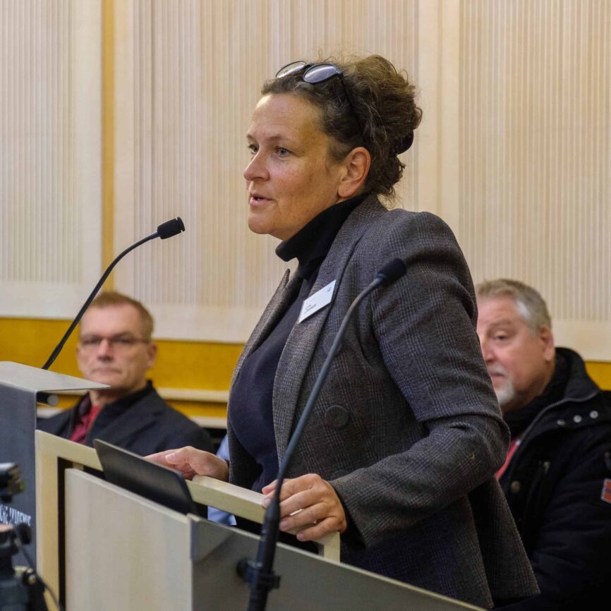 Dr. Annette Seidel-Arpacı, Leiterin der Recherche- und Informationsstelle Antisemitismus Bayern (RIAS), sprach über „Dimensionen des Antisemitismus nach der Shoah“ und stellte zunächst die Arbeit von RIAS vor.