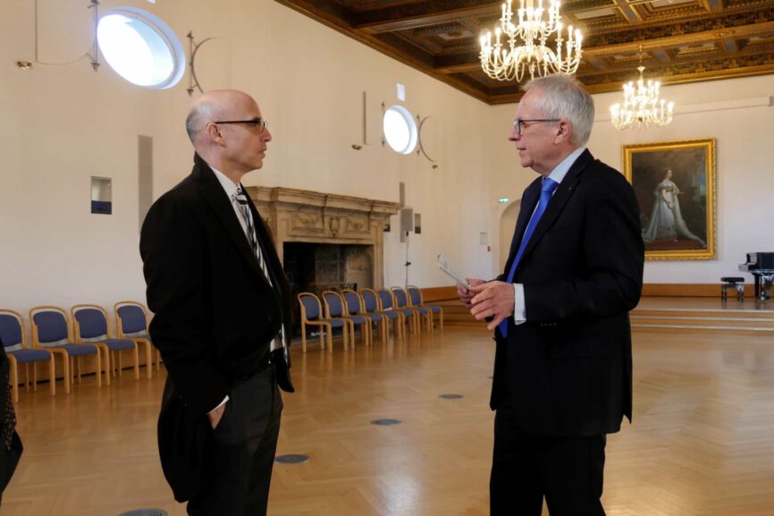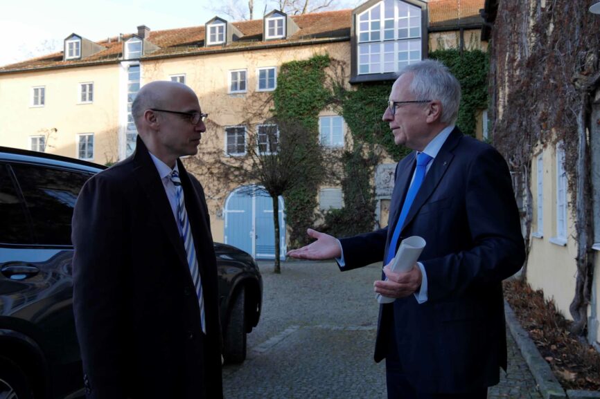 Mit Akademiedirektor Udo Hahn tauschte sich Miller über transatlantische Themen aus und erhielt einen Eindruck von der Tagungsarbeit der Evangelischen Akademie Tutzing – sowie des historischen Standorts im Schloss Tutzing.