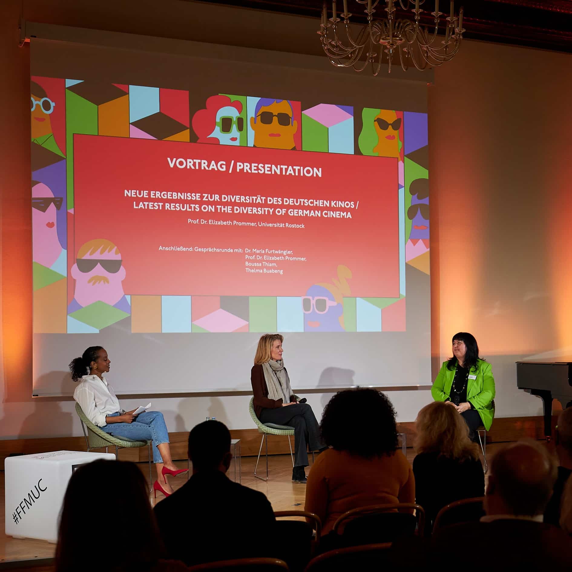 Neue Ergebnisse zur Diversität des deutschen Kinos: Moderatorin Boussa Thiam im Gespräch mit Schauspielerin, Ärztin und Gründerin der MaLisa-Stiftung Dr. Maria Furtwängler und Prof. Dr. Elizabeth Prommer, Direktorin des Instituts für Medienforschung der Universität Rostock. Die Studie wurde von der MaLisa-Stiftung in Auftrag gegeben.