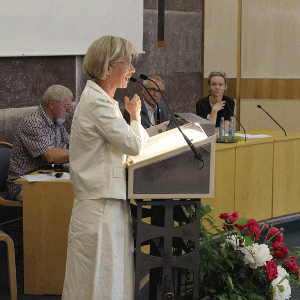 Brigitte Grande: 70 Jahre Freundeskreis bedeutet 70 Jahre ununterbrochenes ehrenamtliches Engagement von Bürgerinnen und Bürgern an der Seite, im Namen und im Dienst der Evangelischen Akademie Tutzing. Und das bayernweit, nämlich überall da, wo es örtliche Freundeskreise gibt, die nach dem Vorbild der Akademie zu Vorträgen und Diskussionsabenden einladen, Meinungsbildung ermöglichen und auch andere Bürger immer wieder zu gesellschaftlichem Engagement zu ermutigen. Gerade im Jubiläumsjahr ist zu spüren, dass die Leidenschaft für diese Aufgabe ungebrochen ist. Das freut mich sehr.