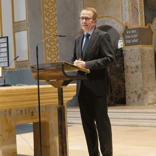 Als Thema seiner Rede hatte der Präsident des Bayerischen Verfassungsgerichtshofs „Was uns zusammenhält – Die Rolle der Verfassung in der pluralen Gesellschaft“ gewählt. Udo Hahn, Direktor der Evangelischen Akademie Tutzing, beschrieb in seiner Begrüßung in der Erlöserkirche in München-Schwabing Synonyme, die als Fliehkräfte in der Gesellschaft wirken. Durch Globalisierung, Digitalisierung, Beschleunigung und Entgrenzung sehe sich der Bürger großen Herausforderungen gegenübergestellt. Gesellschaft aber funktioniere nur dann gut, „wenn ihre Bürgerinnen und Bürger diese Herausforderungen bestehen und friedlich und respektvoll zusammenleben.“ Das geltende Recht sei ein Garant für ein gelingendes Zusammenleben. Das Grundgesetz beschreibe insbesondere in seinen ersten 20 Artikeln unverrückbare Werte und Prinzipien des Zusammenlebens. „Es sichert das friedliche Zusammenleben in Deutschland – und zwar in Freiheit und Pluralität. Damit dies so bleibt, muss es von allen hier lebenden Menschen akzeptiert und respektiert werden.“, so Hahn weiter.