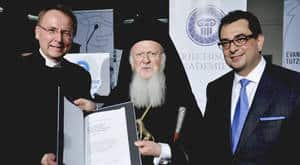 Erstmals hat ein orthodoxer Geistlicher den „Tutzinger Löwen“ erhalten. Das Ehrenoberhaupt der weltweiten Orthodoxie, Bartholomaios I., nahm ihn im Rahmen eines festlichen Abendessens am 17. Mai entgegen, das die Griechische Akademie e. V. in München für ihn ausrichtete. Die Auszeichnung steht nach den Worten des Direktors der Evangelischen Akademie Tutzing, Udo Hahn, für Toleranz und Weltoffenheit – beide Tugenden bestimmten Haltung des Ökumenischen Patriarchen „in vorbildlicher Weise“. „Mit dieser Auszeichnung würdigen wir Ihr Engagement für die weltweite Ökumene, für Verständigung und Versöhnung über Konfessions- und Völkergrenzen hinweg sowie Ihren Einsatz für die Bewahrung der Schöpfung.“ Hahn wies darauf hin, dass der Beitrag der orthodoxen Kirche zur Ökumene viel zu wenig beachtet werde. Dabei habe gerade das Ökumenische Patriarchat die ersten Gehversuche der ökumenischen Bewegung zu Beginn des 20. Jahrhunderts wesentlich gefördert. Udo Hahn erinnerte an Claus-Jürgen Roepke, der in den achtziger Jahren die Evangelische Akademie Tutzing leitete. Ihm sei es ein Anliegen gewesen, den Dialog mit den orthodoxen Kirchen zu pflegen. Mit der Verleihung des „Tutzinger Löwen“ an Bartholomaios I. wolle die Akademie an diese Bemühungen anknüpfen.