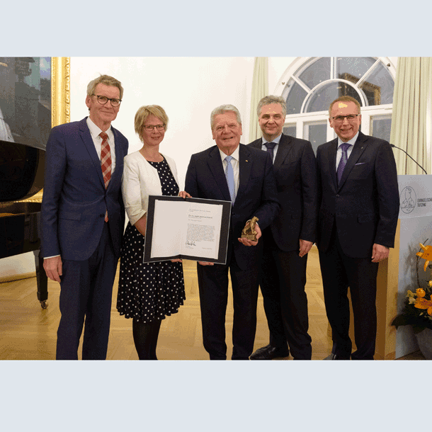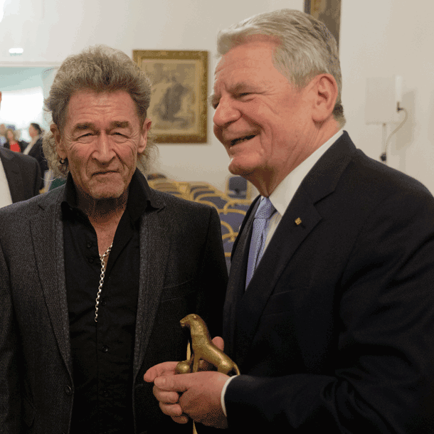 Bild: Joachim Gauck mit seiner Auszeichnung, dem „Tutzinger Löwen“ (Foto: haist/eat archiv)