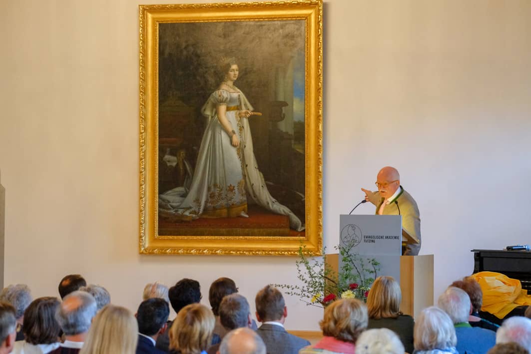 Akademiedirektor Udo Hahn bezeichnete Königin Therese als „das evangelische Gesicht Bayerns“. In einem Festvortrag würdigte Staatsminister a.D. Dr. Peter Gauweiler Leben, Werk und Wirken der Königin. „Ihre Bedeutung für Bayern kann nicht hoch genug geschätzt werden.“ Ihr soziales Engagement, etwa als Stifterin des Theresienordens, der sich der Armenfürsorge widmete, habe Maßstäbe gesetzt. Ihr politischer Sachverstand sei ausgeprägt gewesen und auch von ihrem Mann, Ludwig I., hoch geschätzt worden. Sie sei die einzige Person gewesen, der er wirklich vertraut habe. Gauweiler würdigte in seinem Vortrag auch die Initiative von Herzog Franz, dass Therese 2002 neben ihrem Mann in einen Sarkophag in der Abtei St. Bonifaz umgebettet wurde. Der damalige Landesbischof Johannes Friedrich und Altabt Odilo Lechner segneten seinerzeit das Grab.