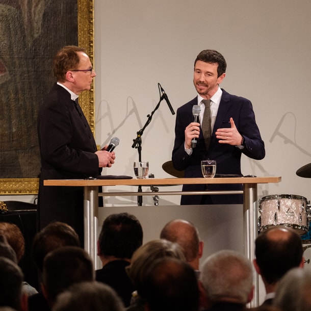Angelika Mrozek-AbrahamEiner der erfolgreichsten deutschen Filmproduzenten stand diesmal im Mittelpunkt des Jahresempfangs der Evangelischen Akademie Tutzing: Oliver Berben sprach am 17. Januar über die Bedeutung der Kultur für eine offene Gesellschaft. Mehr als 300 Gäste aus Politik, Wirtschaft, Wissenschaft, Medien und Kirche folgten der Einladung ins Schloss Tutzing. Klaus Doldinger’s Passport sorgte diesmal für den musikalischen Rahmen – und spielte die Titelmelodien berühmter Spielfilme wie „Das Boot“, „Die unendliche Geschichte“ und „Tatort“.