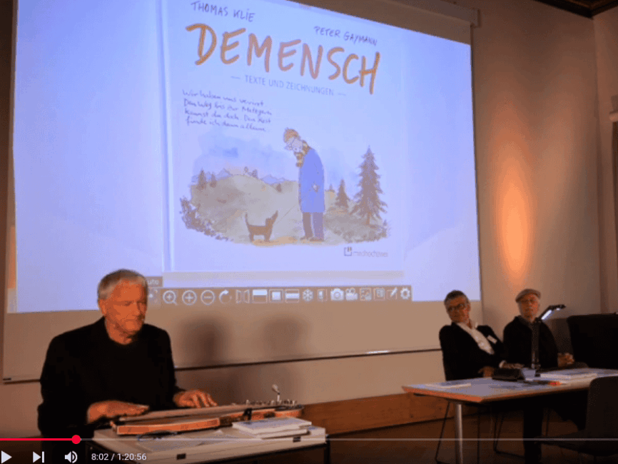 Die Evangelische Akademie Tutzing veranstalte die Tagung „Zukunft Demenz. Perspektiven für eine älter werdende Gesellschaft“ (Foto). Den Beitrag „Demensch – Texte und Zeichnungen mit Musik“ von und mit dem Trio Josef Brustmann, Peter Gaymann und Thomas Klie finden Sie auch hier auf YouTube.