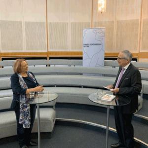 Bild: Sabine Leutheusser-Schnarrenberger während des Interviews in der Rotunde – dem Auditorium der Evangelischen Akademie Tutzing. (Foto: eat archiv)