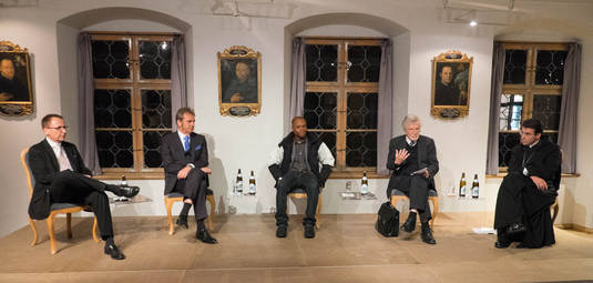 Das Gespräch moderierten Dr. Johannes Eckert, Abt der Benediktinerabtei Sankt Bonifaz in München und Andechs, und Udo Hahn, Direktor der Evangelischen Akademie Tutzing.