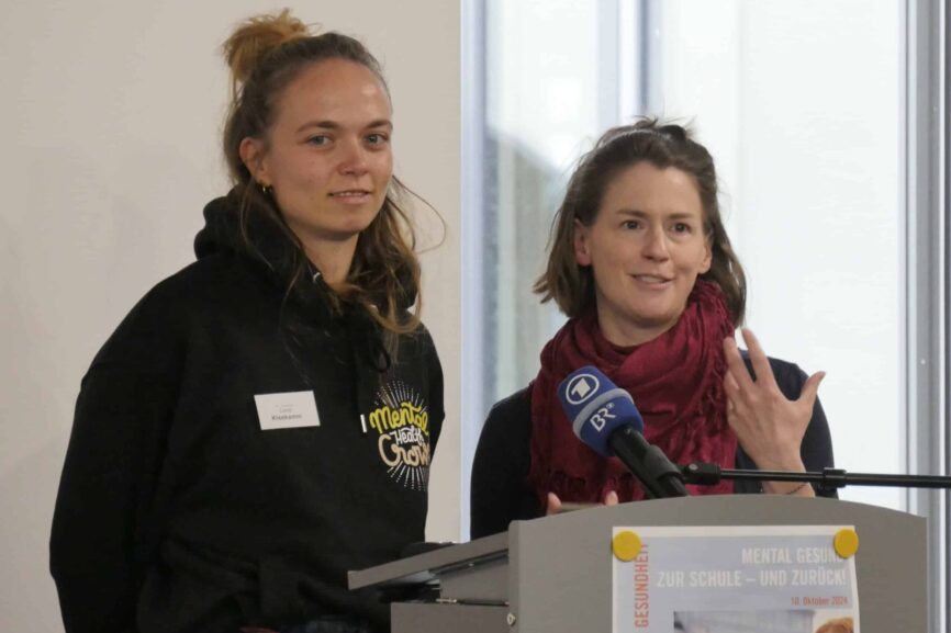 Aufmacherbild: Podiumsdebatte mit BR-Journalistin Sybille Giel zum Thema „Mental gesund zur Schule – und zurück!“ (Foto: dgr/eat archiv)