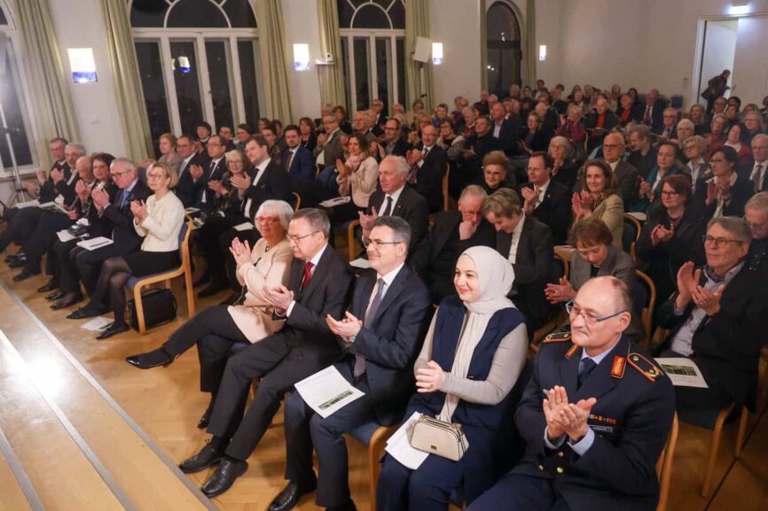 Den Aspekt der Hoffnung vertiefte Hahn in seiner Rede. Als „Leidenschaft für das Mögliche“ habe der Philosoph Sören Kierkegaard sie einst beschrieben. Und ausgehend von den Formulierungen des Theologen Jürgen Moltmann stellte Hahn fest: „Die Hoffnung sucht nach Möglichkeiten. Dabei ist sie nicht nur Tugend und Gefühl. Es gibt auch eine Praxis der Hoffnung. Dazu gehört für mich das Gespräch.“