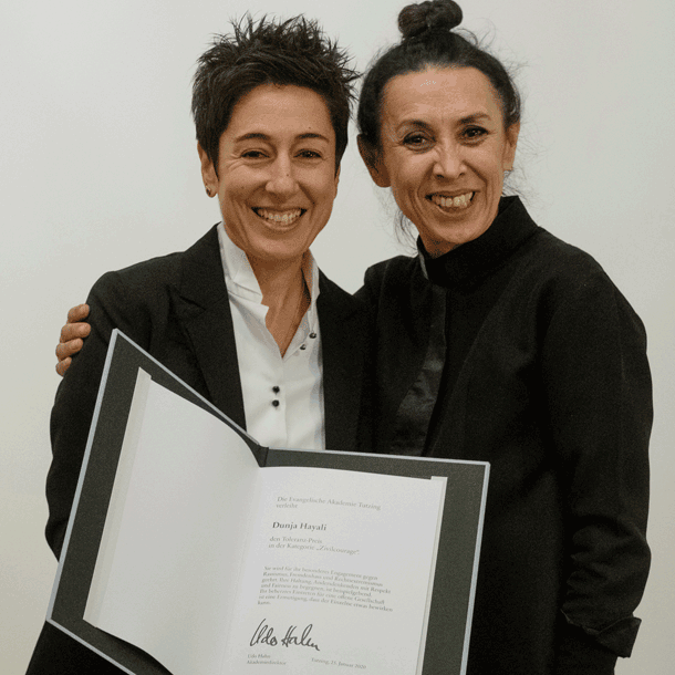 Dankbar und mit Demut nahm die Journalistin und Moderatorin Dunja Hayali am Samstag den Toleranz-Preis der Evangelischen Akademie Tutzing in der Kategorie „Zivilcourage“ entgegen. Die Akademie würdigte damit Hayalis besonderes Engagement gegen Rassismus, Fremdenhass und Rechtsextremismus und ihr beherztes Eintreten für eine offene Gesellschaft, sagte Akademiedirektor Udo Hahn. Die Haltung Hayalis, auch andersdenkenden Menschen mit Respekt und Fairness zu begegnen, sei beispielgebend. Deshalb solle der Preis auch ein Zeichen der Ermutigung und Solidarität sein, so Hahn.
