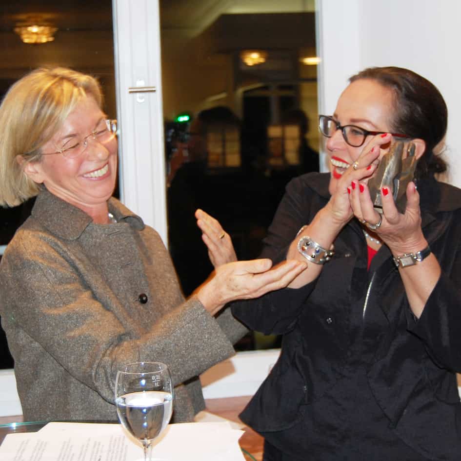Katrin Bach – von Haus aus Lehrerin, außerdem begeisterte Kunstliebhaberin und Kunstkennerin – erwiderte in ihrer Dankesrede, dass die Übernahme eines Ehrenamtes immer mit sehr viel Arbeit verbunden sei. „Auf die Pauke hauen will jeder, nur tragen will sie keiner.“ Nach einer kleinen Rückschau auf die magischen Momente und die wunderbaren Begegnungen mit anderen Menschen in diesen 15 Jahren gelangte Katrin Bach zu dem Schluss, dass sie „einfach Glück bedeutet haben.“